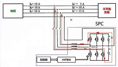 DESPC三相負(fù)荷不平衡自動調(diào)節(jié)裝置綜合利用IGBT技術(shù)、SVG技術(shù)、電力電子技術(shù)等多種技術(shù)融合,裝置利用采樣電路實時采集低壓配電線路的三相電壓、三相電流等運行參數(shù),通過模型運算計算出三相間的不平衡負(fù)荷和需要補償?shù)碾娏?,然后根?jù)裝置設(shè)定的值來控制PWM信號發(fā)生器發(fā)出控制信號給內(nèi)部的IGBT使逆變器產(chǎn)生滿足要求的電流信號。最終由逆變器產(chǎn)生一個滿足要求的電流信號送入到系統(tǒng)中,實現(xiàn)三相符合平衡調(diào)節(jié)。三相負(fù)荷不平衡自動調(diào)節(jié)裝置主要用于低壓配電用戶側(cè),治理三相電流不平衡,相電壓偏低和補償無功,優(yōu)化電能質(zhì)量。