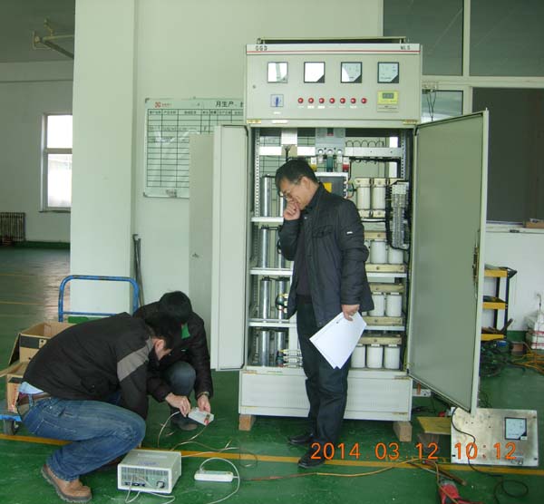 圖五:技術(shù)人員現(xiàn)場演示DETSC低壓動態(tài)無功補(bǔ)償裝置工作原理